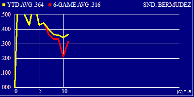 | .364 | .424 | .400 | 11 | 33 | 4 | 12 | 14 | 2 | 0 | 0 | 6 | 0 | 0 | 1 | 1 | 0 | 4 | 0 | 0 | 2 |