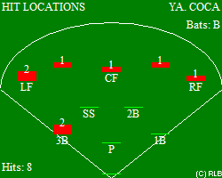| Totals | .160 | .180 | .250 | 23 | 50 | 5 | 8 | 9 | 1 | 0 | 0 | 1 | 2 | 0 | 1 | 5 | 0 | 14 | 2 | 2 | 1 |