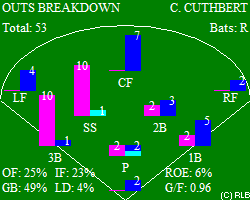 | .294 | .431 | .405 | 30 | 102 | 21 | 30 | 44 | 6 | 1 | 2 | 5 | 0 | 0 | 0 | 19 | 1 | 19 | 0 | 1 | 3 |