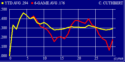 | .294 | .431 | .405 | 30 | 102 | 21 | 30 | 44 | 6 | 1 | 2 | 5 | 0 | 0 | 0 | 19 | 1 | 19 | 0 | 1 | 3 |
