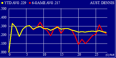 | .229 | .400 | .308 | 28 | 105 | 13 | 24 | 42 | 6 | 0 | 4 | 20 | 1 | 2 | 1 | 12 | 0 | 22 | 11 | 3 | 4 |