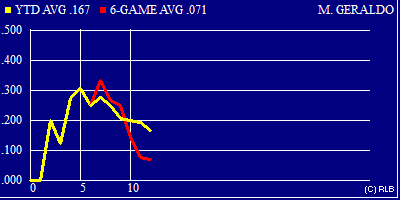 | .167 | .200 | .306 | 12 | 30 | 2 | 5 | 6 | 1 | 0 | 0 | 3 | 1 | 0 | 1 | 5 | 1 | 9 | 2 | 1 | 1 |
