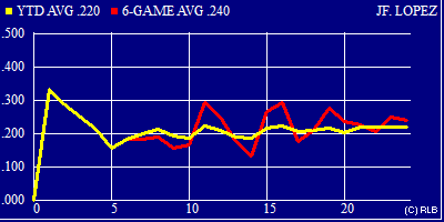 | .220 | .341 | .247 | 24 | 82 | 6 | 18 | 28 | 4 | 0 | 2 | 9 | 1 | 0 | 0 | 3 | 0 | 11 | 0 | 0 | 4 |