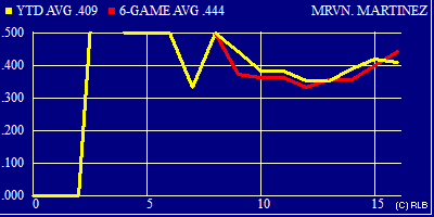 | .409 | .409 | .417 | 16 | 22 | 4 | 9 | 9 | 0 | 0 | 0 | 3 | 0 | 1 | 1 | 0 | 0 | 2 | 0 | 0 | 0 |