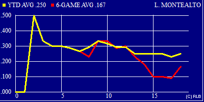 | .250 | .556 | .308 | 18 | 36 | 6 | 9 | 20 | 2 | 0 | 3 | 9 | 0 | 0 | 2 | 1 | 0 | 10 | 0 | 0 | 0 |