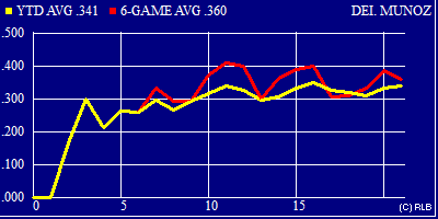 | .341 | .476 | .386 | 21 | 82 | 11 | 28 | 39 | 3 | 1 | 2 | 14 | 0 | 0 | 0 | 6 | 0 | 9 | 3 | 2 | 3 |