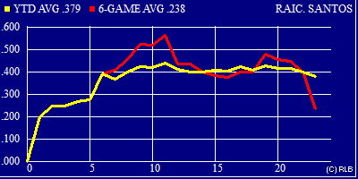 | .379 | .632 | .439 | 23 | 87 | 19 | 33 | 55 | 7 | 0 | 5 | 13 | 1 | 1 | 1 | 9 | 1 | 11 | 4 | 3 | 1 |