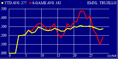 | .277 | .446 | .357 | 29 | 101 | 17 | 28 | 45 | 4 | 2 | 3 | 18 | 1 | 1 | 6 | 7 | 1 | 22 | 0 | 0 | 3 |