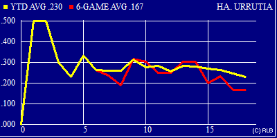 | .230 | .295 | .329 | 18 | 61 | 9 | 14 | 18 | 4 | 0 | 0 | 9 | 0 | 2 | 2 | 8 | 1 | 10 | 0 | 0 | 3 |