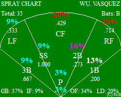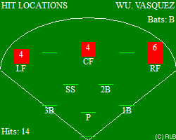 | .298 | .426 | .400 | 18 | 47 | 5 | 14 | 20 | 3 | 0 | 1 | 4 | 0 | 0 | 0 | 8 | 0 | 12 | 0 | 0 | 2 |