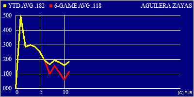| .182 | .212 | .308 | 11 | 33 | 2 | 6 | 7 | 1 | 0 | 0 | 0 | 0 | 0 | 1 | 5 | 0 | 12 | 0 | 1 | 1 |