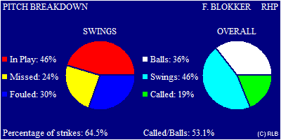 | W | L | ERA | GP | GS | CG | ShO | GF | Sv | BSv | IP | H | R | ER | HR | BB | SO | OBA | |