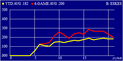 | .182 | .197 | .321 | 21 | 66 | 12 | 12 | 13 | 1 | 0 | 0 | 3 | 3 | 1 | 1 | 13 | 0 | 13 | 1 | 0 | 0 |