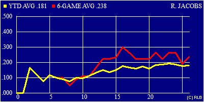 | .181 | .193 | .317 | 26 | 83 | 10 | 15 | 16 | 1 | 0 | 0 | 9 | 2 | 1 | 4 | 13 | 0 | 17 | 6 | 0 | 0 |