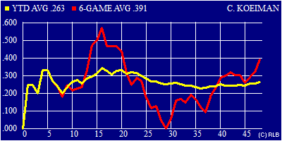 | .263 | .323 | .356 | 48 | 167 | 19 | 44 | 54 | 10 | 0 | 0 | 15 | 2 | 0 | 2 | 22 | 0 | 21 | 5 | 1 | 6 |