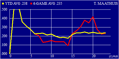 | .238 | .325 | .382 | 23 | 80 | 13 | 19 | 26 | 4 | 0 | 1 | 10 | 4 | 2 | 0 | 20 | 1 | 34 | 4 | 0 | 0 |