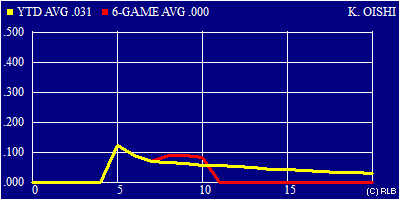 | .031 | .063 | .262 | 20 | 32 | 3 | 1 | 2 | 1 | 0 | 0 | 0 | 0 | 0 | 2 | 8 | 0 | 10 | 0 | 1 | 1 |