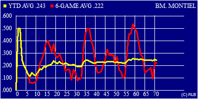 .243 | .419 | .397 | 71 | 148 | 19 | 36 | 62 | 8 | 0 | 6 | 27 | 1 | 2 | 8 | 31 | 3 | 31 | 1 | 0 | 7 |